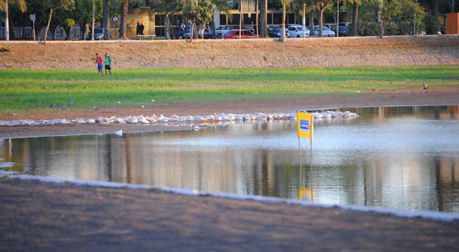 A faixa foi colocada na Lagoa Grande no fim de semana por ambientalistas. Lei mais! Eles já teriam protestado contra o descaso no local. As obras de revitalização da Lagoa Grande continuam paradas e pessoas que frequentam o cartão postal estão preocupadas com a situação. Além de estar com uma imagem nada agradável, a lagoa começou a exalar mau cheiro.